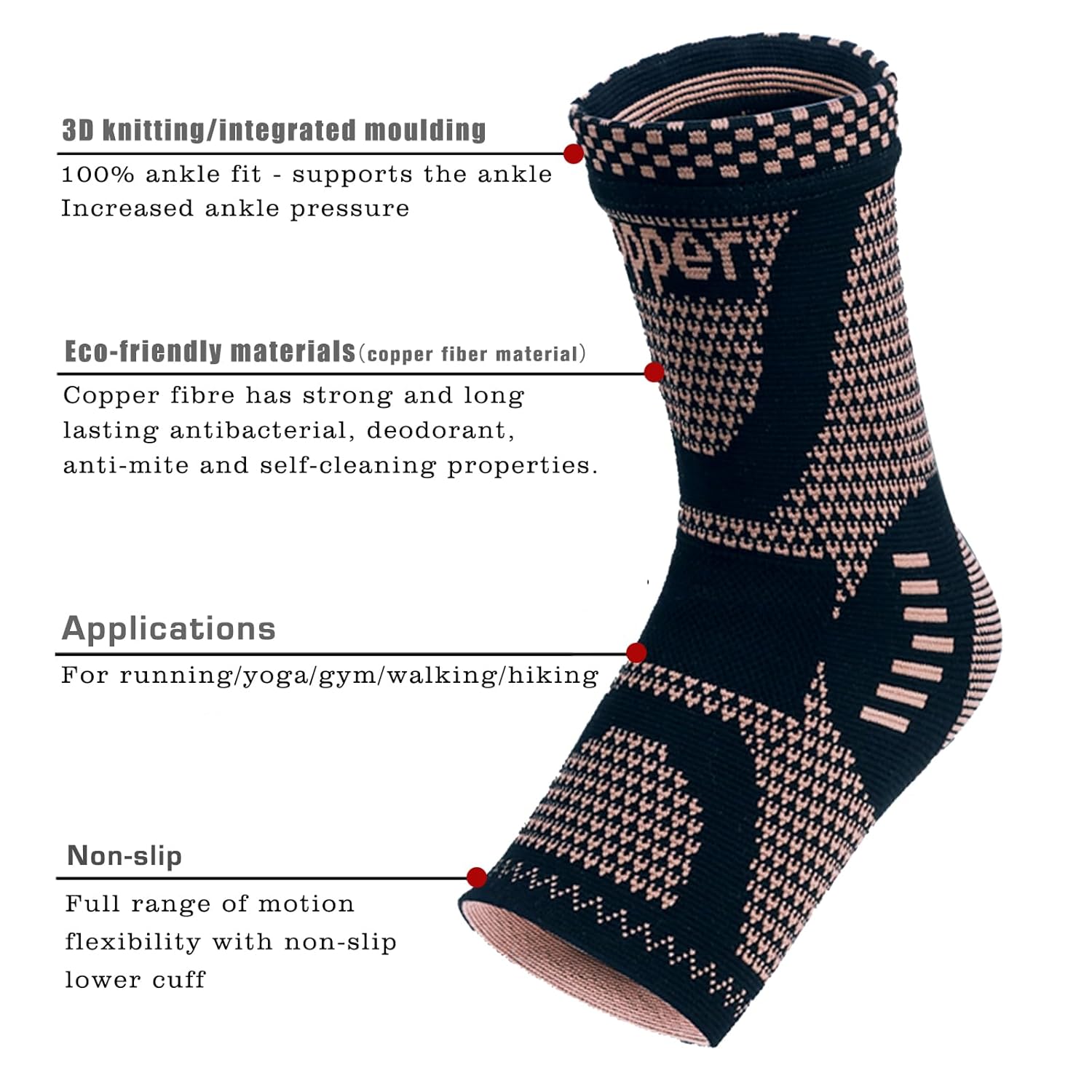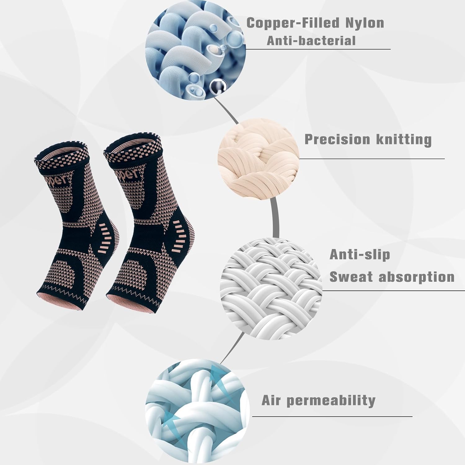 This Copper Sock provides high-quality compression for your ankle to promote blood circulation and reduce inflammation, soreness, and pain. Support your body with medical-grade copper-infused nylon material that is breathable and licks away unwanted moisture from the skin. The sleek design allows you to wear the sleeve with socks and shoes while running, walking, or working out. The sleeve works to support your ankle, foot, and arch making it the perfect gift for anyone struggling with plantar fasciitis, ankle sprains, arthritis, and more!