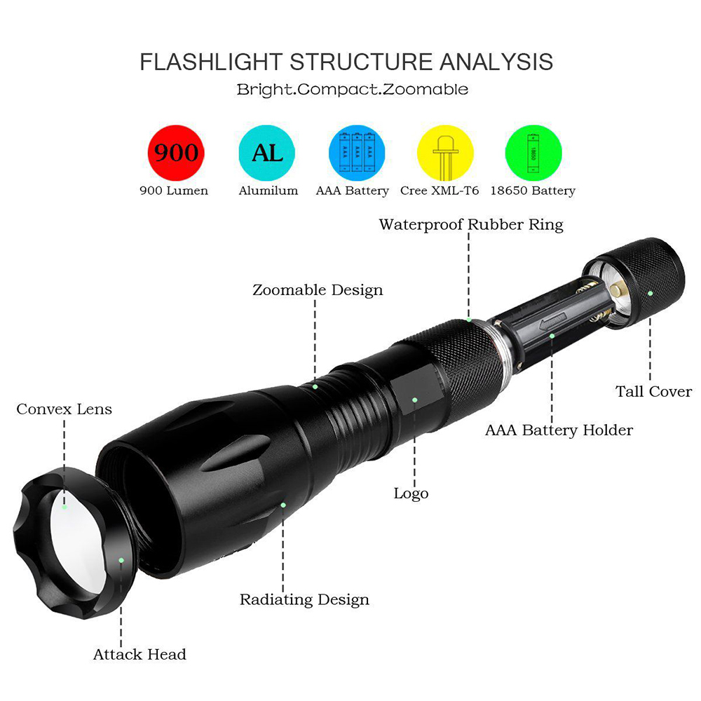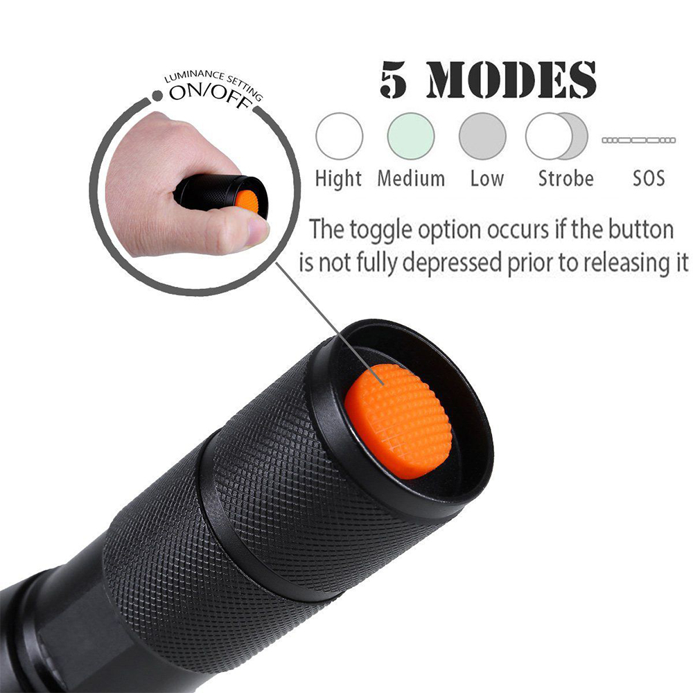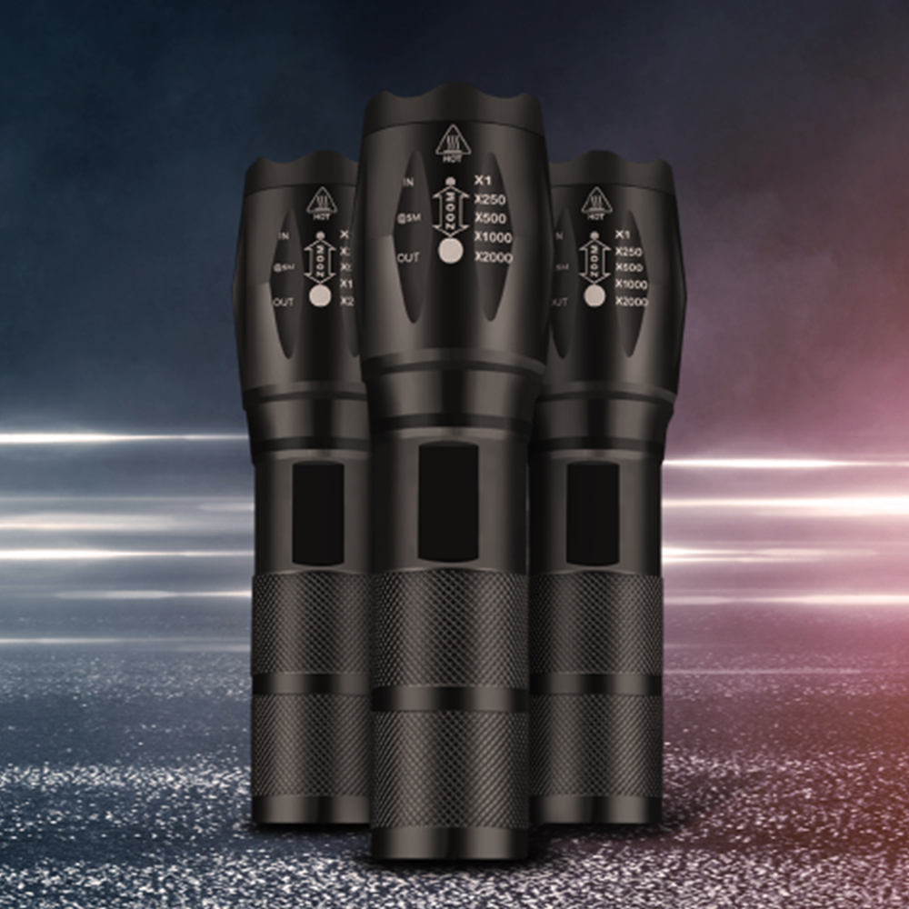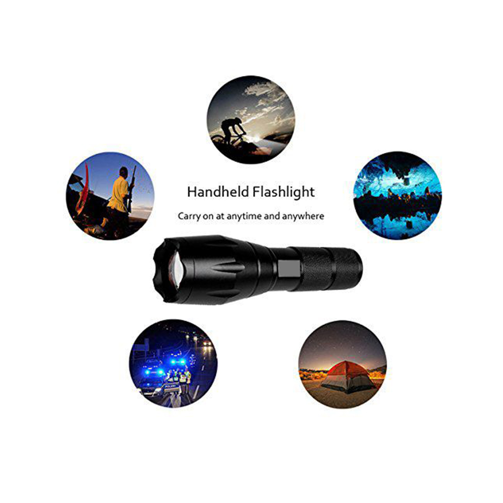 With our powerful yet portable Mini Flashlight, you may never have to be left out in the dark again. This ultra-bright LED flashlight is the perfect size and brilliance for almost any use including packing it in a purse while walking your dog at night, lighting up rooms that are several square meters in size, or focusing on objects far in the distance. This mini flashlight also boasts of many hours of usage. Enjoy its water resistance, skid-resistant design, adjustable focus, and 5 different mode settings that include High, Medium, Low, Strobe, and SOS emergency. Specifications Product Size: 5.35inx1.33in Product Weight: 179g Product Batteries: AAA or a single rechargeable 18650 battery