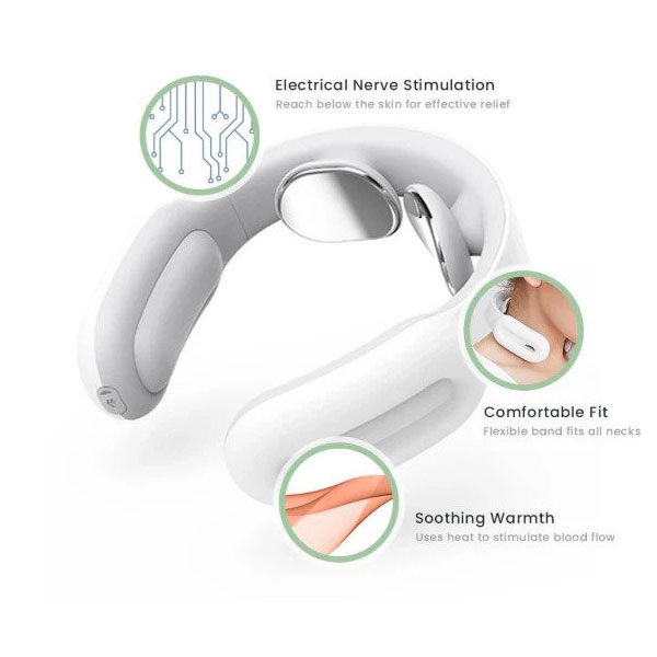 The Electronic Pulse Shiatsu Neck Massager provides gentle electronic pulses combined with a 107F degree compress to help to relieve stubborn hard to reach neck pain and give you a divine relaxing experience. The device is completely portable so you can use it while you are reading, working, watching TV, driving, doing yoga or meditating. It’s small and easy to bring with you. You can use it whether you’re at home after a long day, in a hotel room traveling, or even during a long-haul flight. Neck pain doesn’t come on your schedule, which is why this device is designed to be effective in a single session. Just a few minutes of use will provide instant relief. Soothely isn’t just effective at relieving pain. It can also help melt away your worries and daily stress. You might have trouble staying awake while using it! Comes with three modes to choose from and over 15 levels of intensity to fit your exact pain relief requirements! Automatic Mode; Simulating a human massage using electronic pulses; Pinch Mode; Simulating human acupuncture and tapping; Shock Mode; Simulating human massage and scraping. Specifications: Charging Type: Micro USB Type C (Included) Modes: Heat Function: 104F / 113F Product Weight: 4.4 Pounds Product Dimensions: 7.68” x 6.22” x 2.56” inches