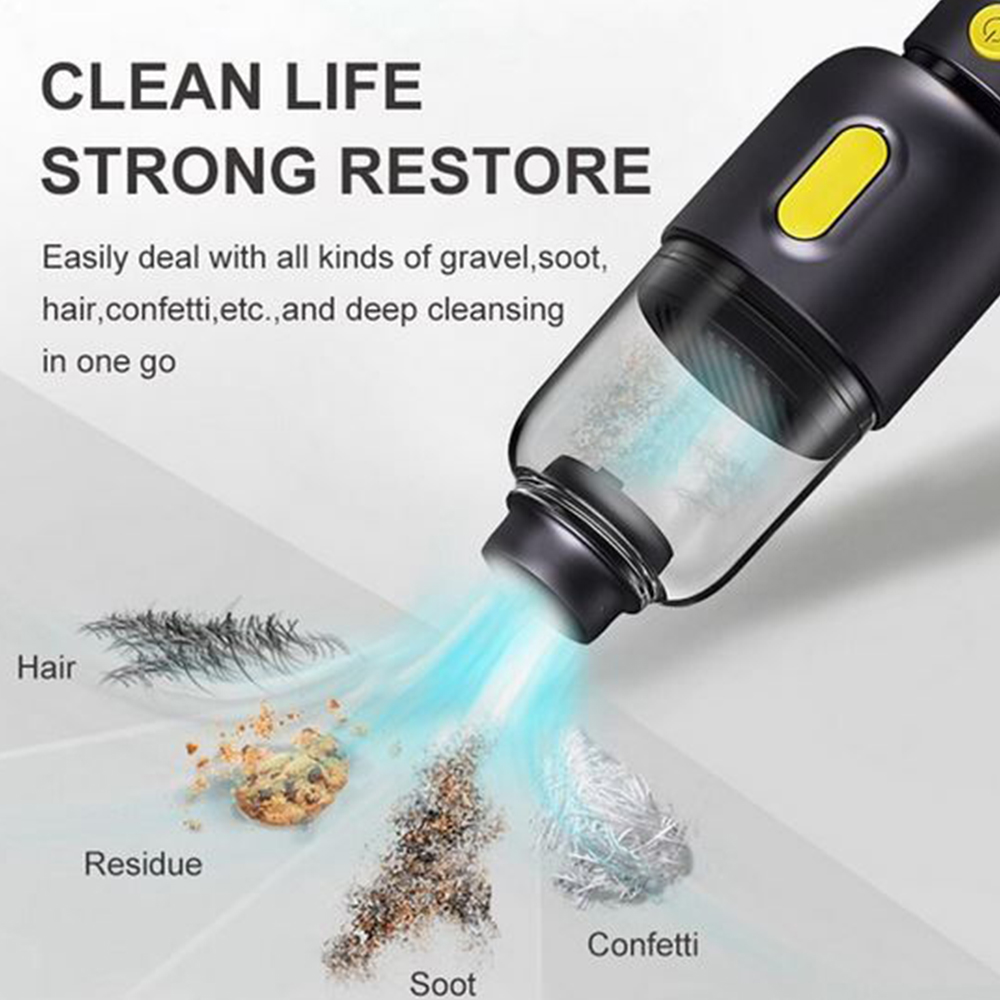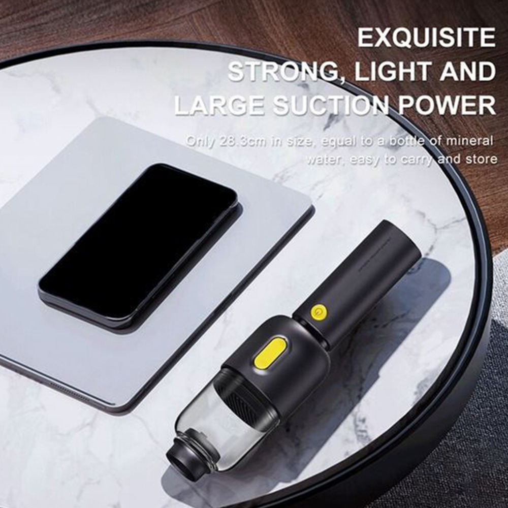 Are you tired of lugging around a bulky and heavy vacuum cleaner while trying to clean your home or car? Introducing our portable vacuum cleaner! With its compact and lightweight design, you can easily carry it around and clean almost any surface, whether it's the stairs, upholstery, or even the tight spaces in your car. Our portable vacuum cleaner also features a powerful suction and two attachments for different cleaning tasks, making it a versatile cleaning tool for most households. Plus, its rechargeable battery ensures that you can use it without needing to constantly change out batteries. Don't settle for a cumbersome vacuum cleaner, upgrade to our portable option today. Features: Hypa filter, brush suction nozzle, controlling handle, and a removable battery. Specifications Product Dimensions: 283x73.4x76mm Product Weight: 1.7 lb. Battery Capacity: 13.32 Wh, 1800 mAh
